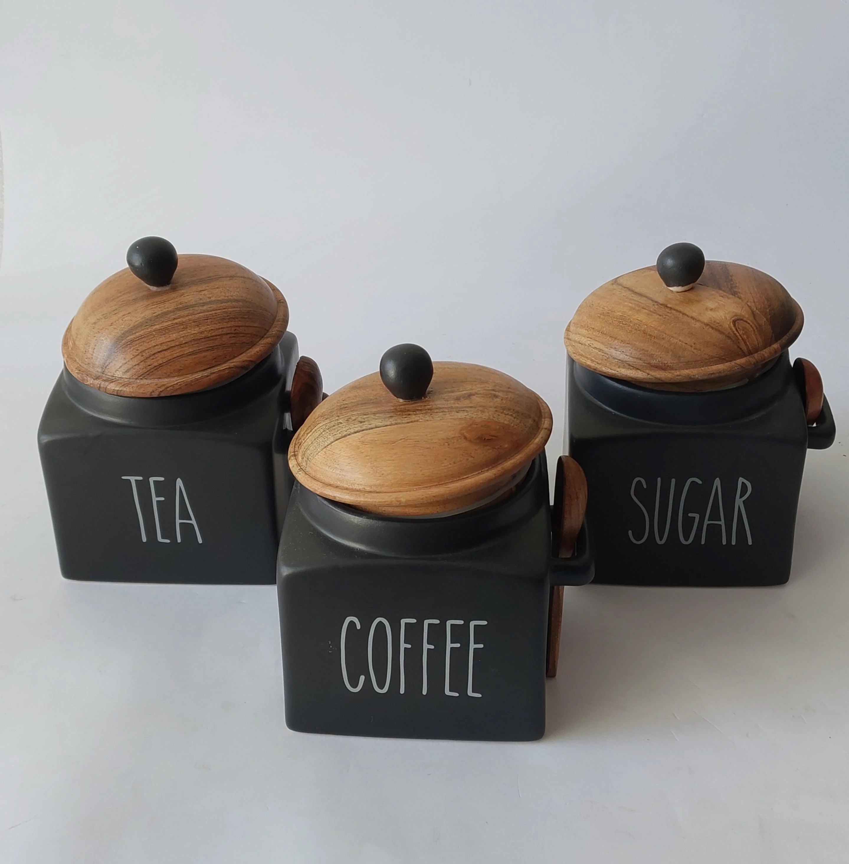 Black Tea Coffee Sugar Ceramic Canisters Grey Pottery 500 ml