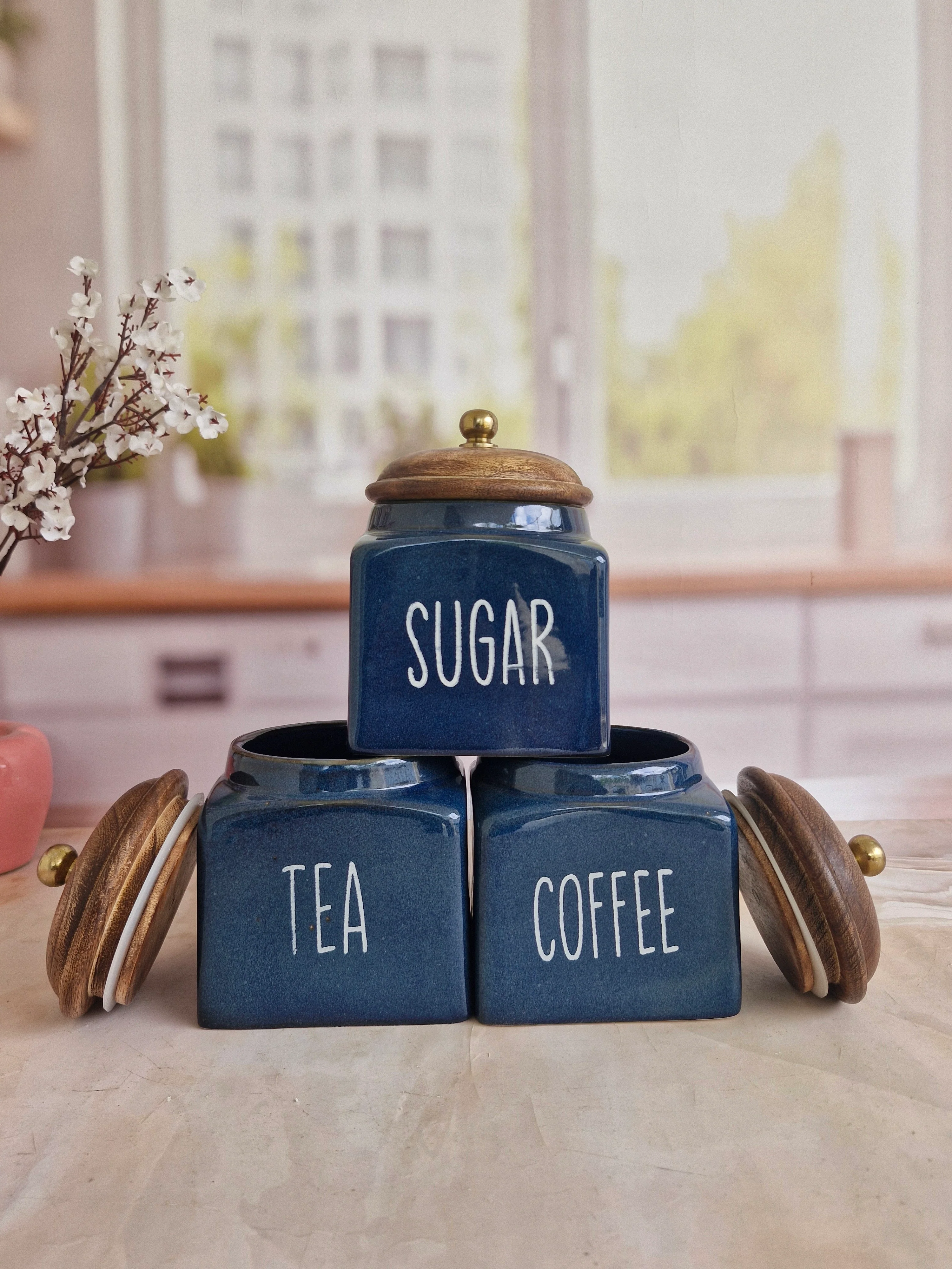 Deep Blue Square designs Tea ,Coffee, Sugar airtight container without spoon