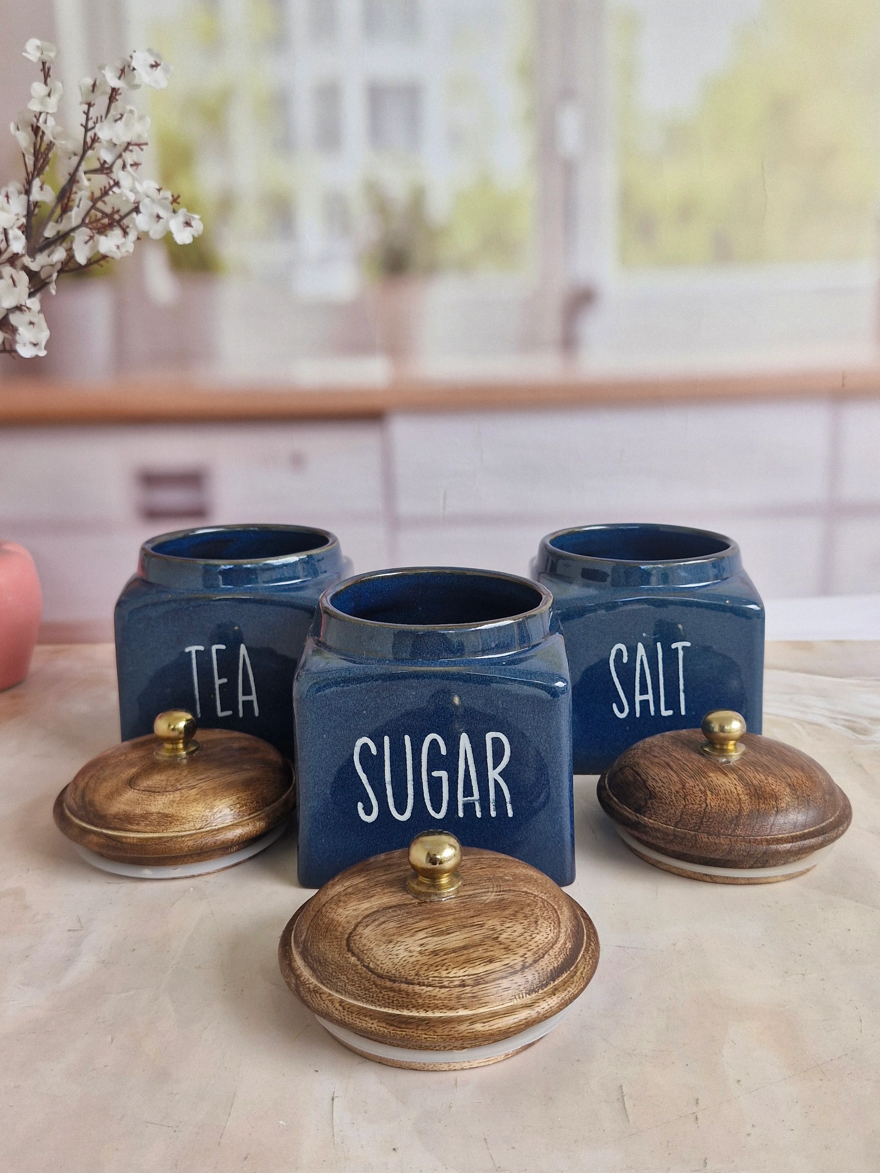 Need: Elevate your everyday essentials these Deep Blue square jars will add a touch of luxury to your kitchen countertops.