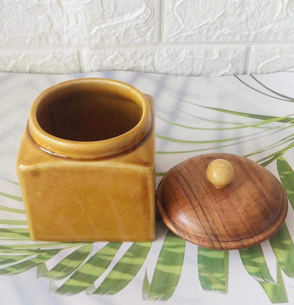 Grey Pottery Honey Square Solid Ceremic Canisters