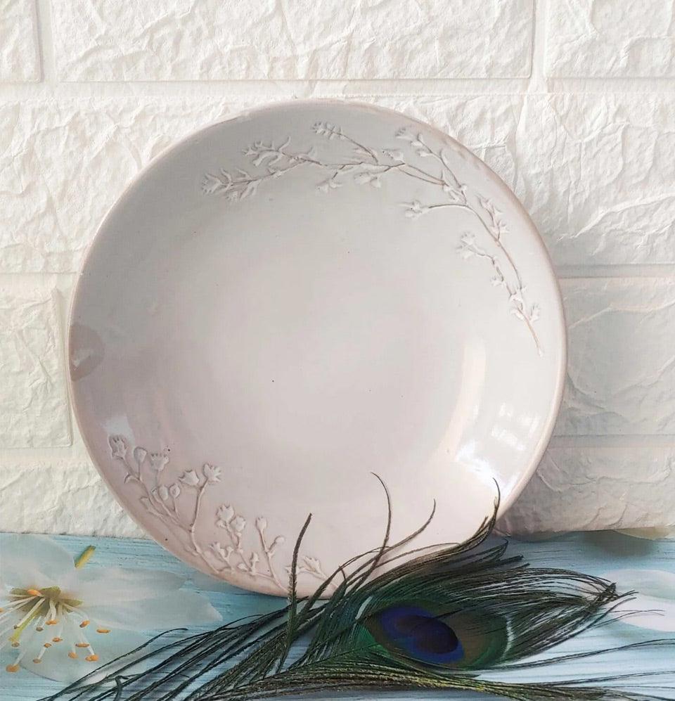 Grey Pottery white Round Floral Ceremic Pasta Ceramic Platters