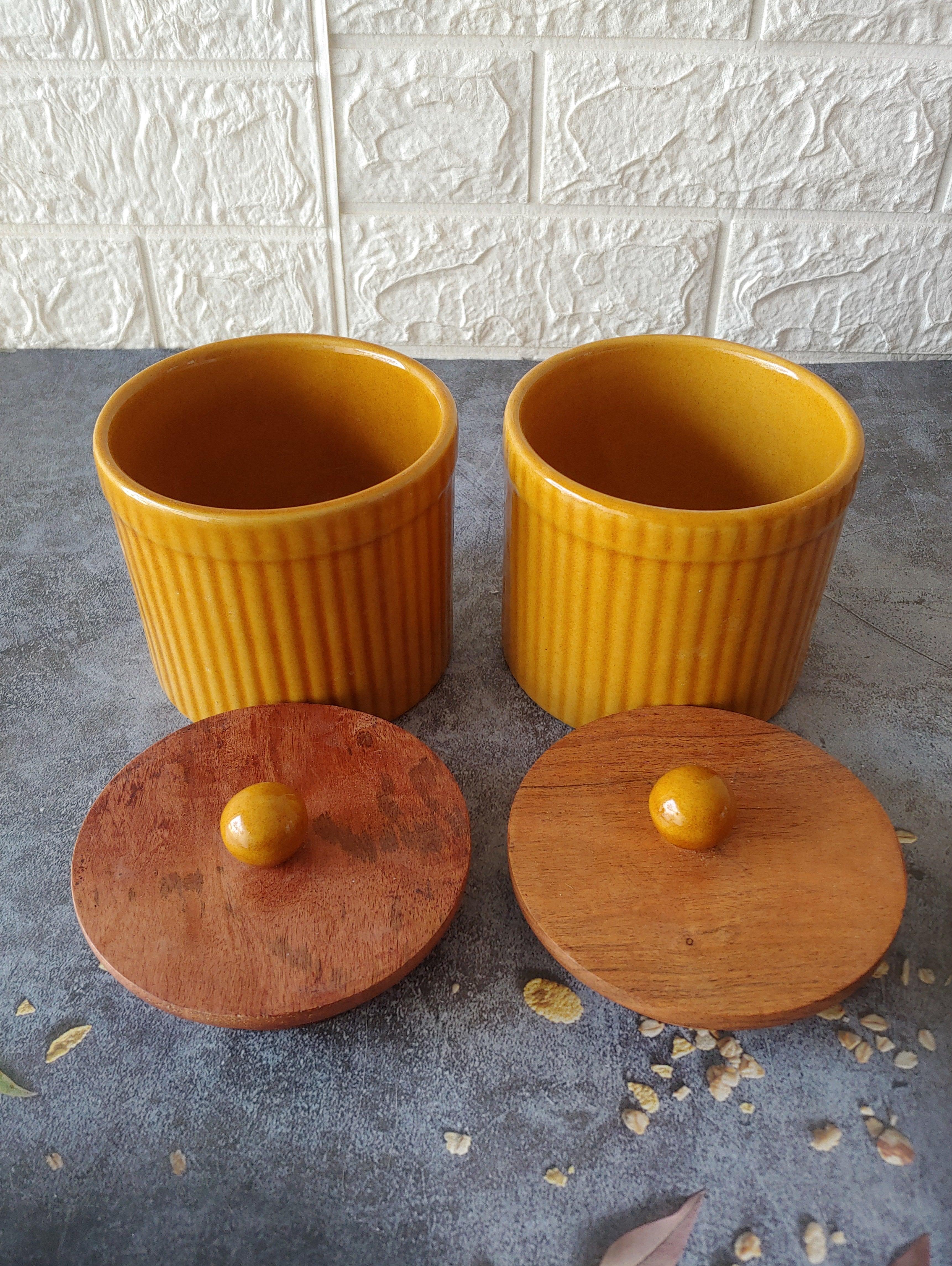 These beautiful ceramic jars with wooden lids are the perfect way to store your dry goods, snacks, . They are made of high-quality material. The container are, keep them clean and organized with ease.