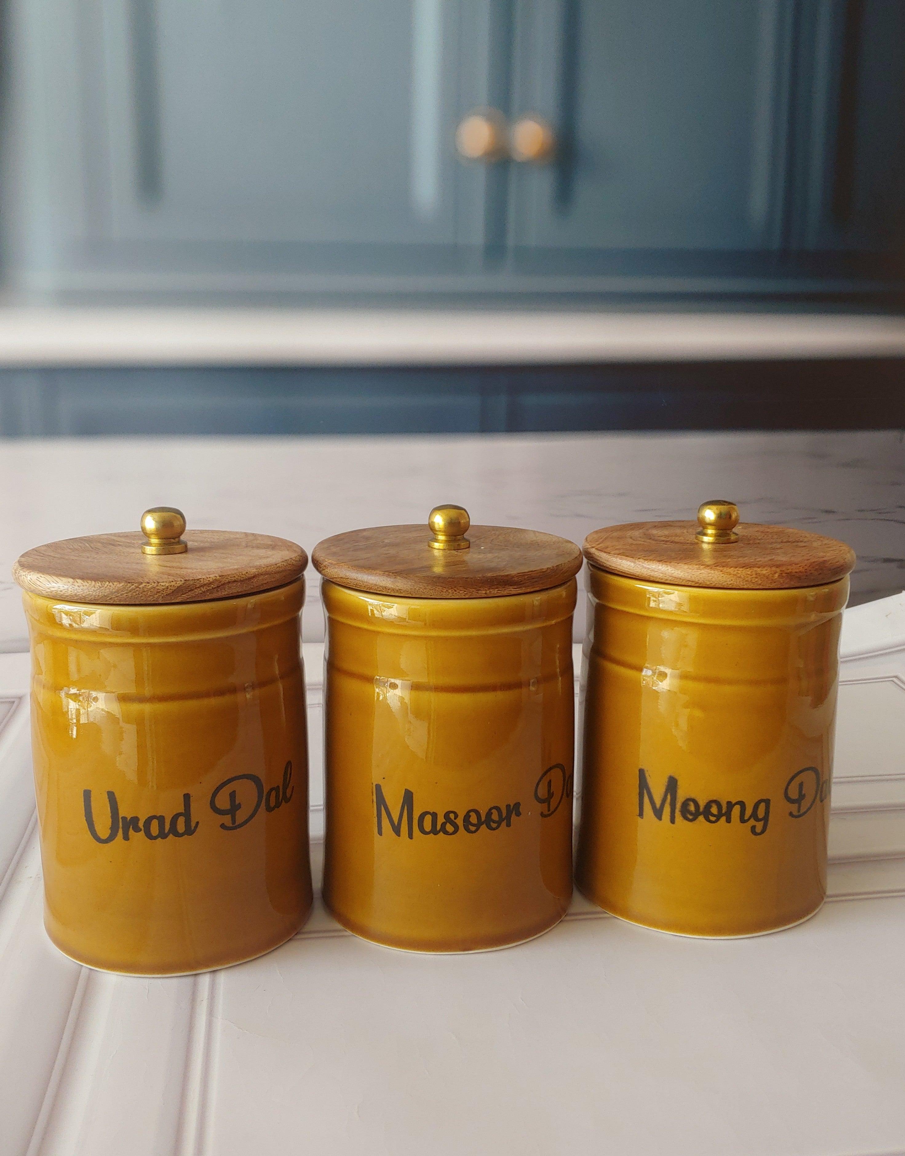 Royal Anarkali kitchen Spice Dal Delight Airtight Ceramic Container (1kg) with wooden Lid